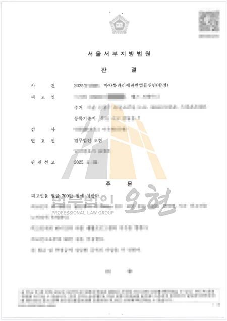 재판 결과는 저희 오현과 의뢰인이 그토록 원하던 벌금형이었습니다. 투약과 소지가 경합한 사건에서는 집행유예만 나와도 성공이라는 말이 있을 만큼 벌금형 선고는 매우 이례적이고 성공적인 결과입니다.